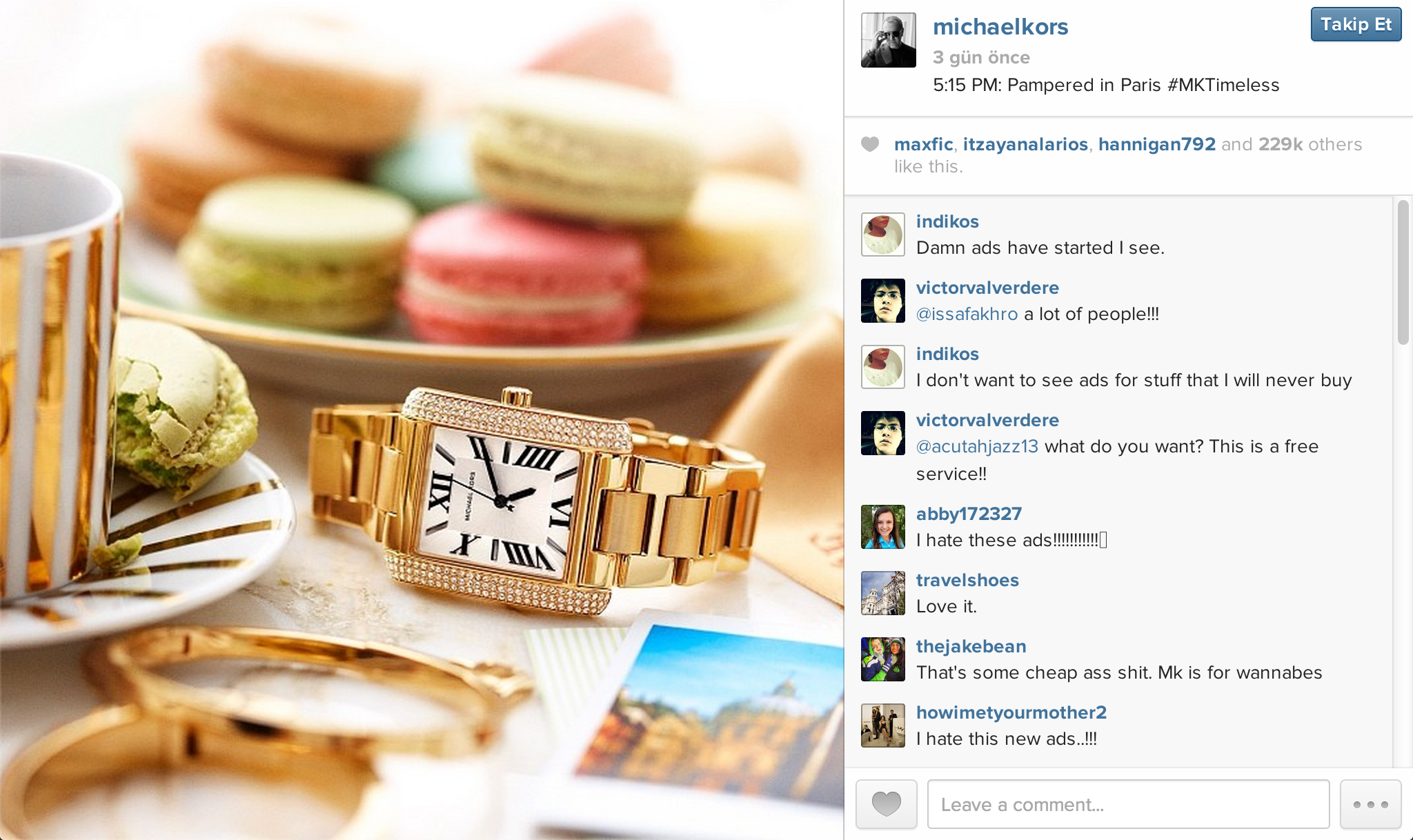 İlk reklam, sıradan bir gönderi gibi paylaşıldı ve 200binden fazla beğeni aldı. İlk Instagram reklamı, beğenilerin yanı sıra kullanıcılardan tepki de gördü.