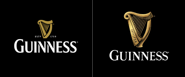 Geçen yıla hakim sadeleşme trendine bu yıl karşı koyan birkaç marka olduğunu görüyoruz. Guinness de onlardan biri. Guinness logosunu sadeleştirmek yerine tam tersine daha da detaylandırmış. Logomark’taki arp sembolü eklenen gölgelerle 3 boyut kazanmış.