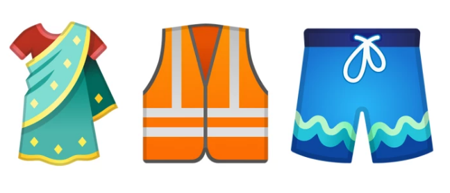 Yeni emoji’lere eklenen diğer şeyler arasında yeni kıyafetler de var. Deniz şortu, yelek ve bale ayakkabısının yanında en çok Hindistan’ın milli giysisi “sari” dikkati çekiyor.