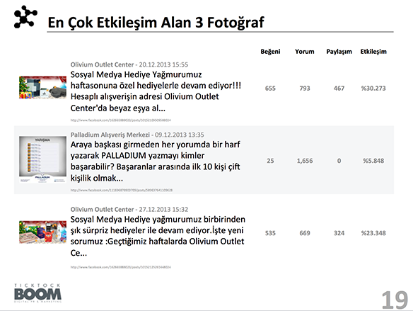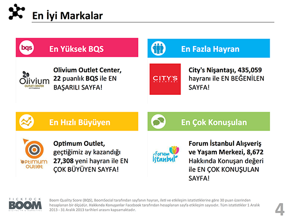 Markanızın ve rakiplerinin sosyal medya performanslarını ölçme ve raporlamanın yanı sıra, sosyal ağlarda içerik üretme stratejiniz ve de yatırımınızın geri dönüşünü ölçme gibi bir çok farklı amaca hizmet edecek BoomSocial Sosyal Medya Rapor ve Analizleri, başlangıç olarak Facebook ve Twitter kanalları için satın alınabilecek.
