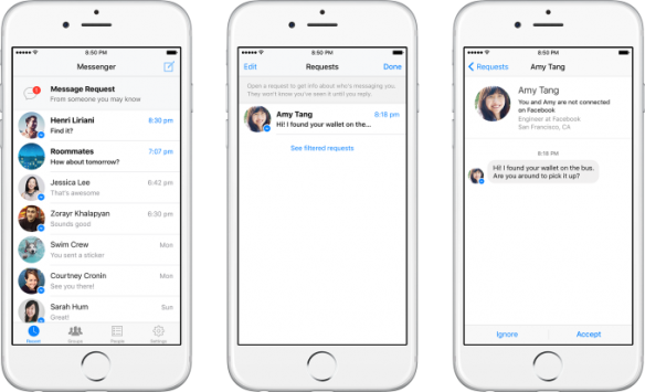 Facebook’ta arkadaşınız olmayan kişilerden gelen mesajlar şimdiye kadar “Diğer” kutusunda yer alıyor, bu kutuya mobilden ulaşılamazken mesaj geldiğinde de herhangi bir uyarı yer almıyordu. Facebook şimdi bu “Diğer” kutusunu kaldırarak yerine “Message Request” (Mesaj Talepleri) özelliğini getirdi. Bu özellikle birlikte arkadaşınız olmayan birinin size mesaj atmak için istekte bulunması gerekecek. Kabul etmeniz durumunda ise mesaj, gelen kutusunda yerini alacak.