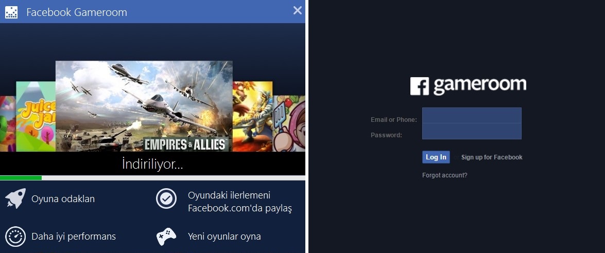 Facebook Gameroom deneyimini yaşamak için öncelikle facebook.com/gameroom adresine gittiğinizde programı indirip ardından Facebook hesabınızla giriş yapmanız gerekiyor.