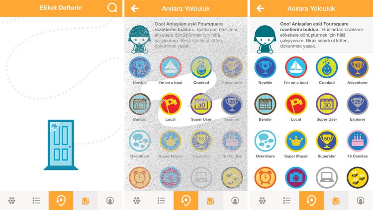 Etiket Defteri bölümüne giriş yaptığınızda, eğer eski bir Foursquare kullanıcısıysanız “Etiket Dönüştürücü 9000″ adlı makine sizi karşılayacak! Bu makine, daha önceden Foursquare üzerinde kazandığınız rozetlerinizi etiketlere çevirmenizi sağlayacak. Eski rozetlerinizi etiketlere çevirmek için rozetleri “Etiket Dönüştürücü 9000”e doğru sürüklemeniz gerekecek. Bu işlemden sonra diğer rozetleriniz otomatik olarak etiketlere dönüşecek.