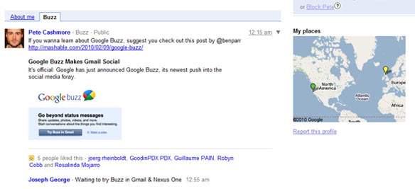 Doğrudan Gmail’e entegre şekilde çalışan Google Buzz ile kullanıcılar, mesajlarını, fotolarını ve linklerini ağlarında yer alan kişilere sunabilirken, aynı zamanda diledikleri takdirde, Twitter, Flickr ve Picasa hesaplarını da buraya bağlayabiliyorlar.