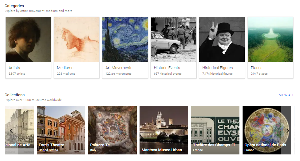 Ressamlar, medyumlar, sanat hareketleri, tarihi olaylar gibi kategorilerin; British Fashion Council, Ford’s Theatre, Palazzo Te gibi birçok müzedeki koleksiyonların yer aldığı site, şimdi keşifler ve icatlara dair eklenen yeni çevrim içi sergisindeki 400 yeni interaktif koleksiyonu ile tarihi bilgi bankamız olma yolunda… Ziyaretçilerin kendilerine ait profil oluşturmasını da sağlayan sitede favori konularımız için klasörler de oluşturabiliyoruz.