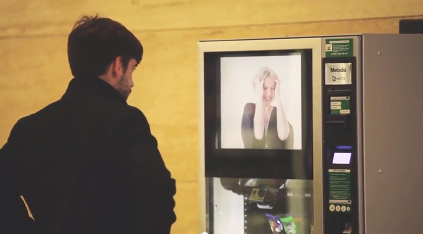 Bu hatalı makine ürünü vereceği zaman bozuluyor ve alınmak istenen ürün makinenin içinde kalıyor. Erkekler bu duruma sinirlenip makineye vurmaya başladıklarında ise makinenin üzerindeki gülümseyen kadın ağlamaya başlıyor. Rusya’da şiddet yüzünden ölen kadınların sayısı az değil ve amaç buna dikkat çekmek. Bunun için Moskova’nın büyük alışveriş merkezlerinden biri seçilmiş.