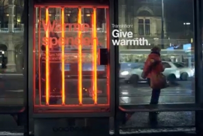 Evsiz insanların soğuk kış günlerinde üşümemesi adına yeni ve güzel bir kampanya daha yapıldı. Viyana’da otobüs duraklarına ısı yayan bir ilan yerleştirildi. Reklam panosuna para atıldığında panodaki ısı derecesi artıyor. Böylece evsiz insanlar için bağış toplanmış oluyor.