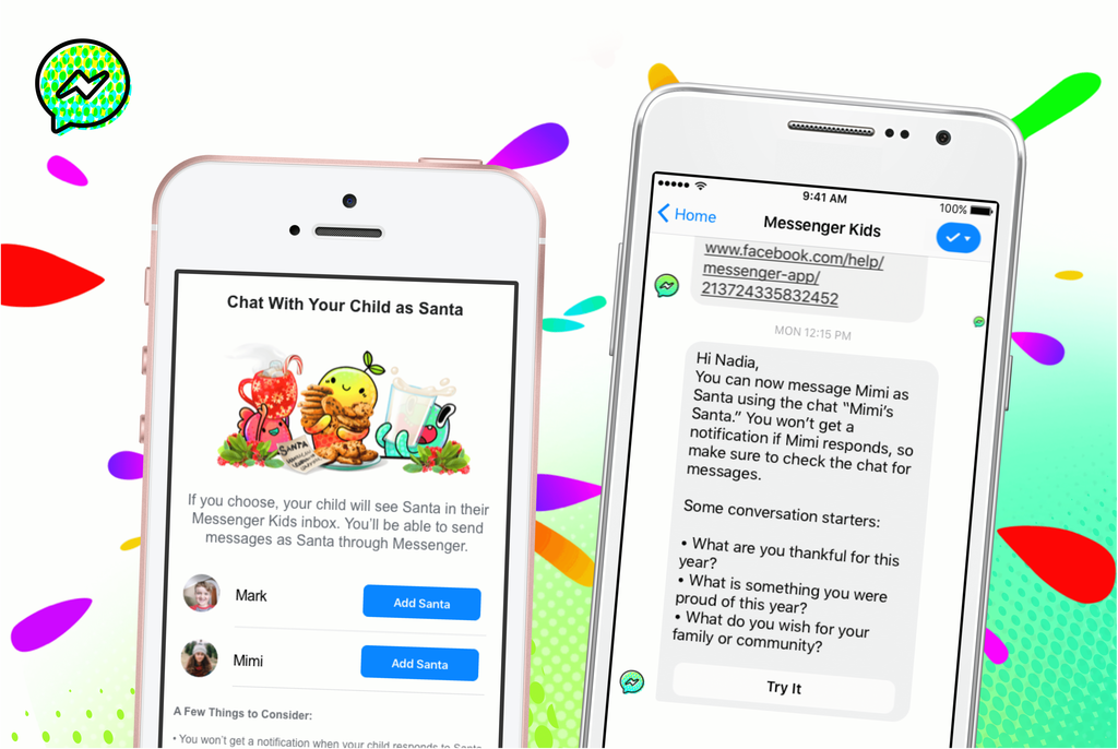 Kullanmak için çocuğun 13 yaş sınırı olan Facebook üyeliğine gerek duymadan, ebeveynlerinin hesabıyla giriş yapılabilen Messenger Kids uygulaması çocuklara sunduğu eğlenceli filtrelerle de dikkat çekiyor. Yeni yıla sayılı günler kala yepyeni filtre, maske ve çıkartmalarla 2020’yi kutlayan Messenger Kids’in özellikle dans eden Noel Baba filtresi, havai fişek ve konfeti konseptleri tatil ruhunu yansıtıyor.