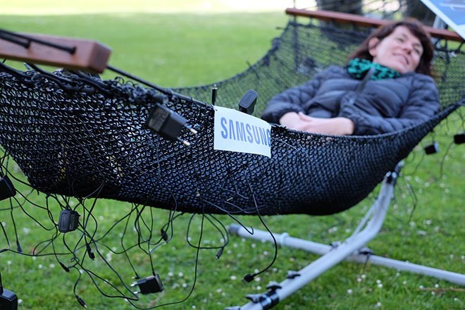 Samsung’un Belçika Mobil Pazarlama Yöneticisi Dieter Reyntjens ise “Kablosuz şarjların popülaritesi gittikçe artıyor. Starbucks, McDonald’s, Ikea ve Lexus gibi şirketler, müşterilerine kablosuz şarj imkanı sunuyor. Samsung Galaxy S6 ve S6 Galaxy modellerimiz de kablosuz şarj özelliğine sahip. Biz de eğlenceli ve yaratıcı bir yolla kablolara veda etmek istedik.” açıklamasıyla hamakların hikayesini anlatıyor.