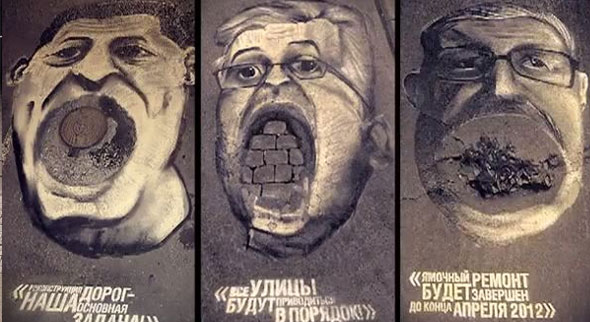 Biraz sanat, biraz internet… Şehir hayatıyla ilgili yazan lokal web sitesi URA.ru, politikacıları yolları onarmaları için uyarmaya karar verdi.