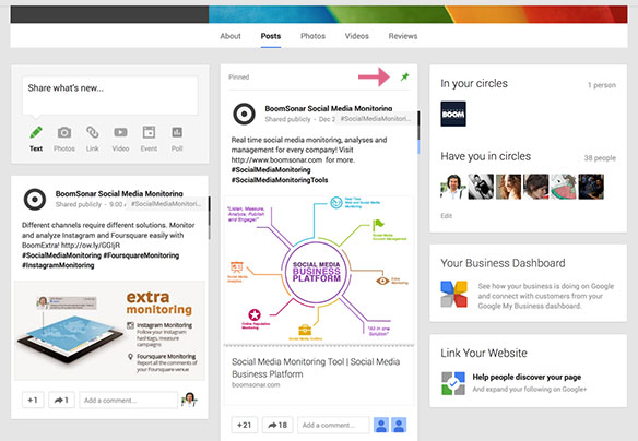Google Plus post’larınızı pin’leme özelliği getirdi. Artık profilinizde veya sayfanızda en üstte durmasını istediğiniz paylaşımınızı seçeneklerden pin’leme özelliğini kullanarak öne çıkartabileceksiniz.