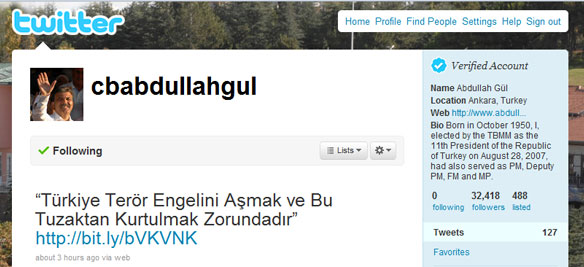 Türkiye’den ise henüz bir kaç hesap verified account olarak tanımlı. Bunlardan biri Cumhurbaşkanı Abdullah Gül http://twitter.com/cbabdullahgul , bir diğeri ise Radikal gazetesi teknoloji editörü ve MYK Medya ortaklarından Serdar Kuzuloğlu (http://twitter.com/mserdark).