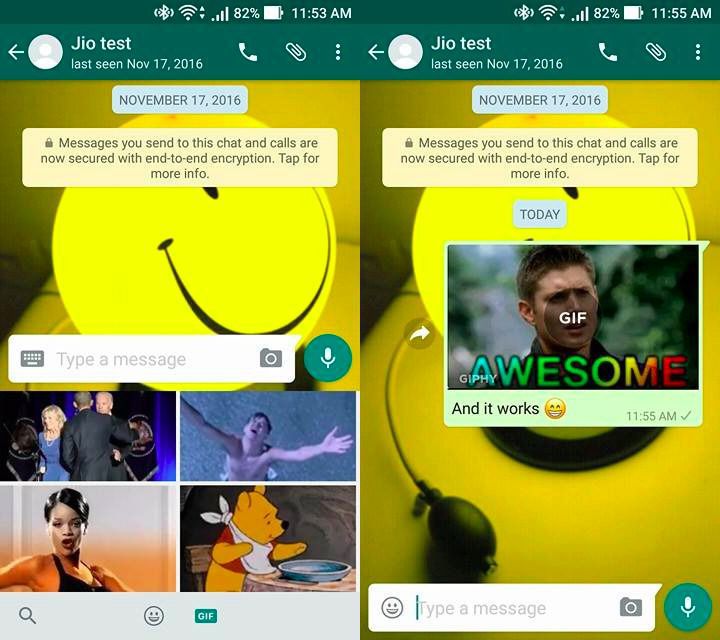 Messenger‘da kullandığımız GIF araması, şimdi de WhatsApp‘a geliyor. Bu özellik sayesinde anahtar kelimelerle arama yaparak sohbetinize en uygun GIF’leri bulup ekleyebileceksiniz.