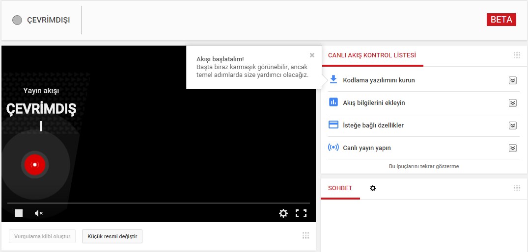 Henüz beta sürümünde olan uygulamayı kullanarak canlı yayın yapmadan önce bazı adımlar atmanız gerekiyor. Youtube hesabınıza giriş yaptıktan sonra Youtube Gaming’den canlı yayın yapmak için “Go Live” sekmesine tıklıyorsunuz. Bu sekme sizi aşağıda gördüğünüz sayfaya gönderiyor.